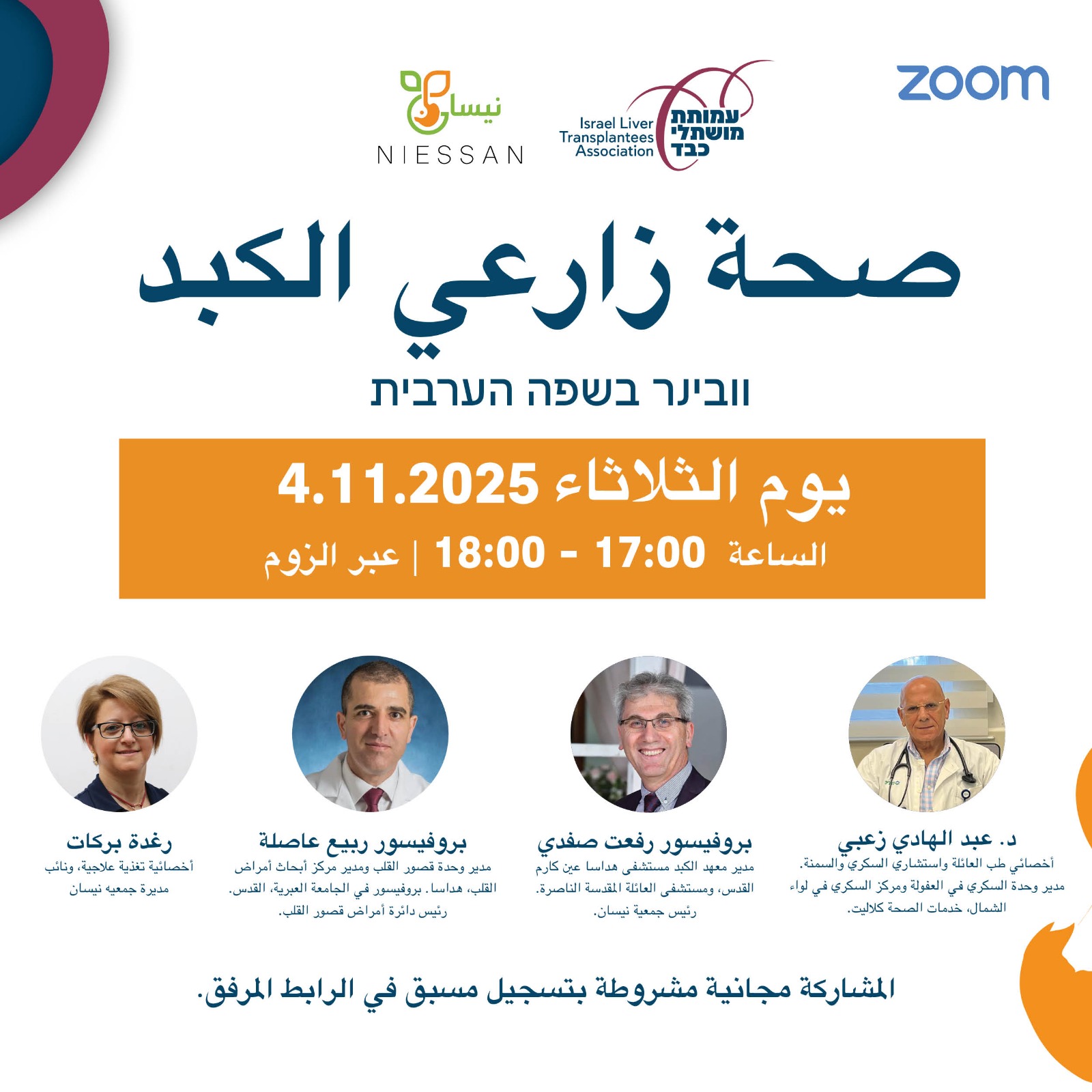 الندوة موجّهة خصّيصًا لزارعي الكبد، أفراد عائلاتهم وكل من يرغب بالمشاركة لتلقّي الإرشاد والمعلومات الهامة من الأخصائيين.
